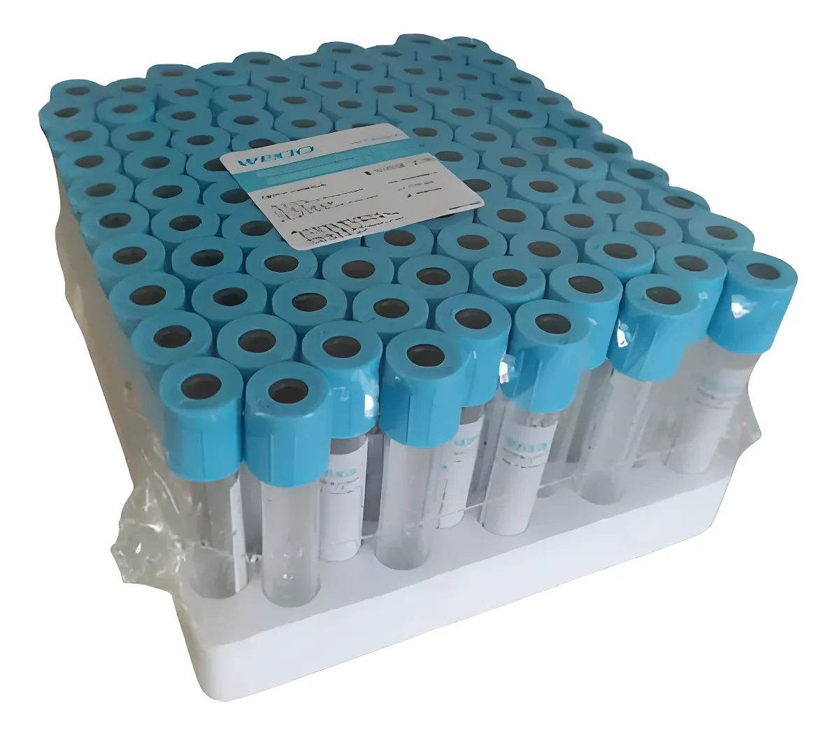 Tubo para toma y recolección de sangre Azul con citrato de Sodio 1:9, de 2.7 ml, Gradilla c/100 tubos marca WEGO